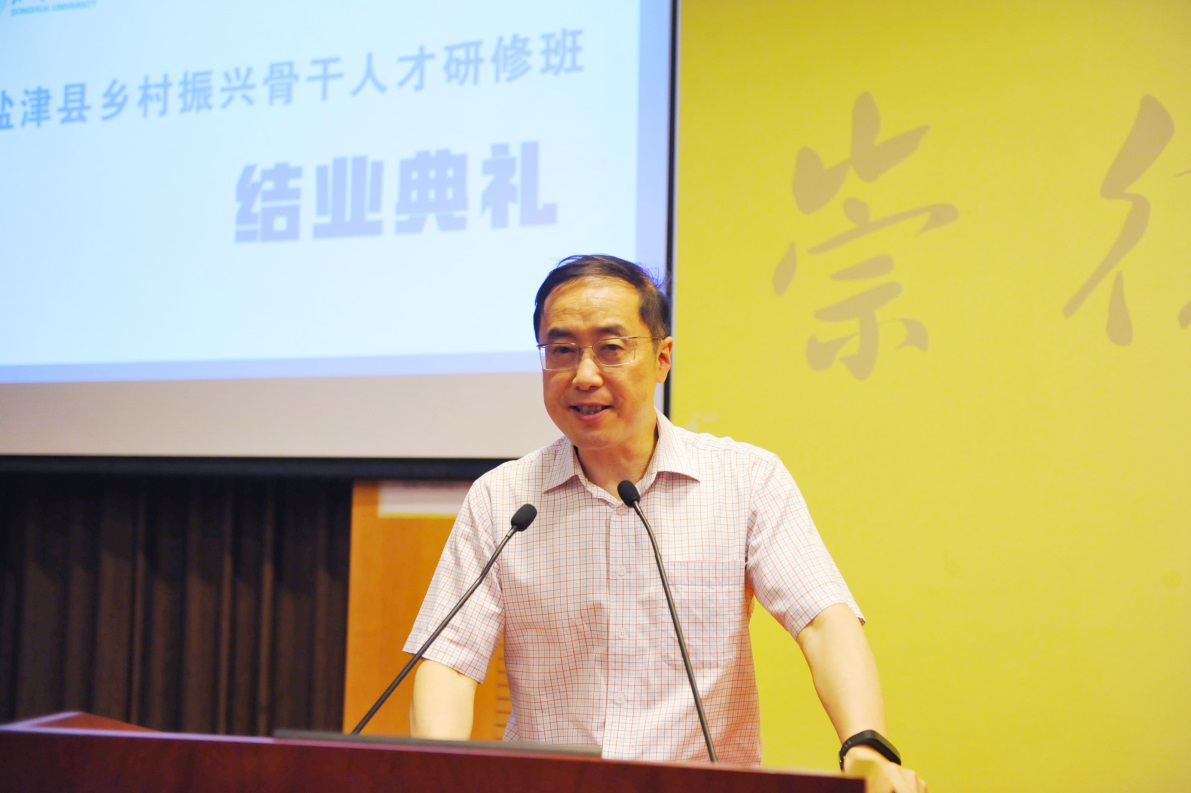 副校长陈南梁讲话陈南梁指出,东华大学作为教育部直属、国家“211工程”、“双一流”建设的全国重点大学,在新时代肩负着党和国家赋予的脱贫攻坚新使命。学校本着振兴盐津经济,助力盐津发展的宗旨,开办了本期盐津乡村振兴骨干人才研修班。当前,脱贫攻坚战进入决胜的关键阶段,提升人才资源是打好脱贫攻坚战的重要保障。希望同学们不忘初心、砥砺前行,经过这次学习交流,开阔思路,为盐津脱贫发展的实践贡献力量。为保证课程的授课质量与针对性,为期一周的研修学习致力于理论与实践相结合,旨在提升盐津县各级干部、骨干人员的综合管理水平。课程从中国宏观经济、乡村振兴的含义和政策、农村电子商务生态体系构建、新时代的法治思维与农村基层治理法治化、数字经济与数字经济鸿沟等方面进行多角度精心设计。授课教师在充分了解盐津县县域经济发展特点与个性化需求的基础上,紧密对接市场和社会前沿进行授课。此外,研修班结合现代社会快节奏生活对人们心理的影响,特邀心理学专家开展了针对扶贫干部的心理压力缓解与自我调适方面的知识讲授。