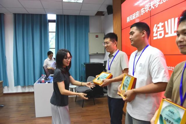 结业典礼上,刘峰涛和倪国华分别代表校企双方发表结业祝语与感言,他们都结合自身的学习经历以及与东华的不解之缘,着重提到持续学习对自身成长的助力,在学习的征途中不断求索完善与自我重塑。倪国华强调在数字化时代,销售人员必须拥抱变化、主动学习。他谈到崇德博学、砺志尚实的东华校训内涵深刻,与三枪集团的企业理念高度契合。学员们要专注投入,做到有所思、有所成、有所用,努力成为兼具专业深度和知识广度的T字型人才,在创新能力和复合能力上不断提升自我,真正实现乘风破浪,破群而出。