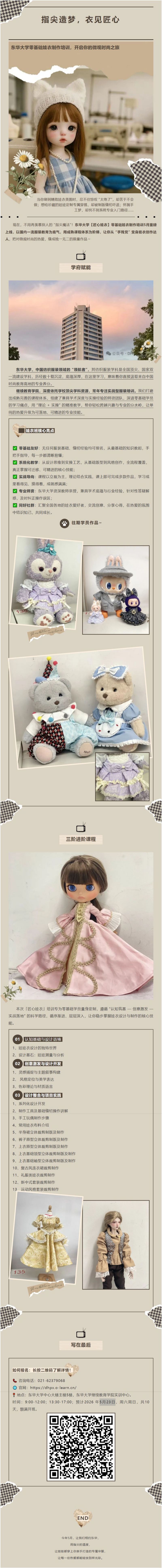 报名中|东华大学零基础娃衣制作培训5月23日开班